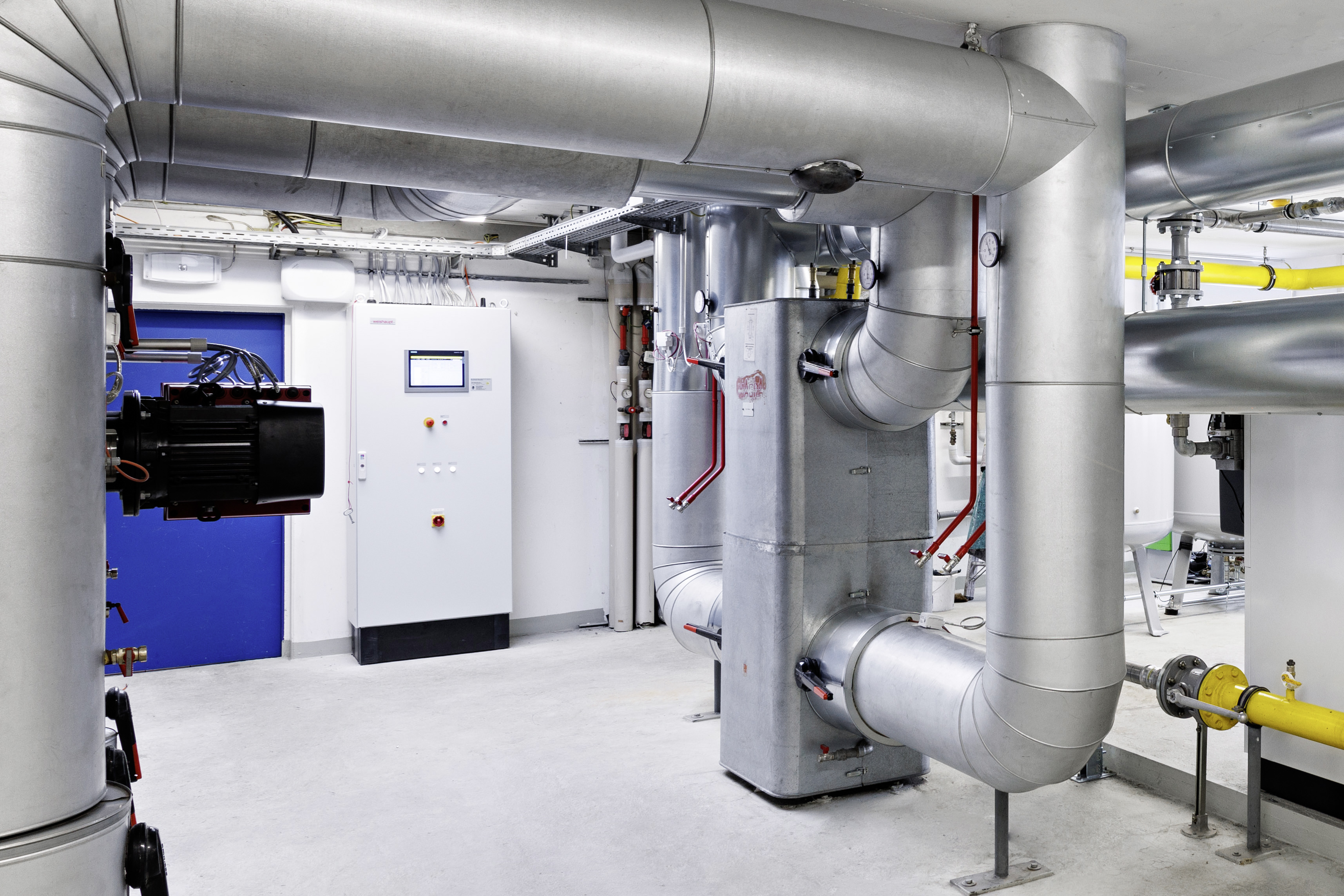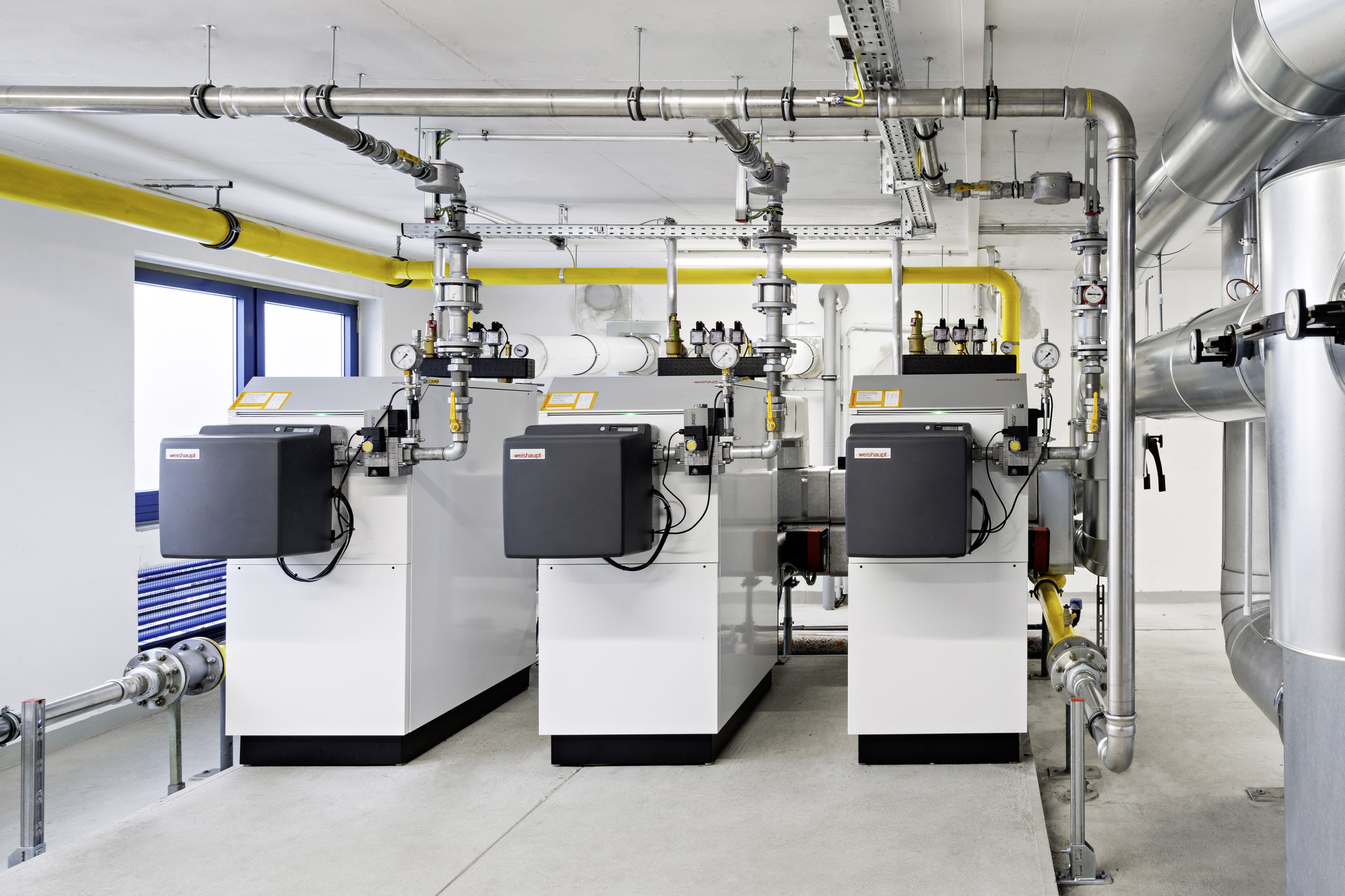 V rámci rekonštrukcie vykurovania nainštalovala stavebná spoločnosť Böpple GmbH tri plynové kondenzačné kotly Weishaupt Thermo Condens® WTC-GB 620 zapojené v kaskáde a rozvádzač Weishaupt. Rozvádzač zabezpečuje riadenie výroby a distribúcie tepla, kaskádovú reguláciu tepelných zdrojov, reguláciu objemového prietoku na strane výroby aj spotreby a vizualizáciu. Záznamy teplôt, počítadiel prevádzkových hodín a štartov poskytujú prevádzkovateľovi kedykoľvek prehľad o prevádzkovej spoľahlivosti a účinnosti systému. Vďaka novým kondenzačným kotlom, čerpadlám s reguláciou otáčok a regulácii objemového prietoku na strane výroby aj spotreby sa výrazne znížila spotreba elektrickej energie a zemného plynu.